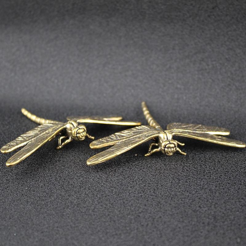Vintage mosazná figurka vážky - Dekorace na stůl domova a kanceláře ve starožitném stylu, Kreativní čajové zvířátko pro sběratele