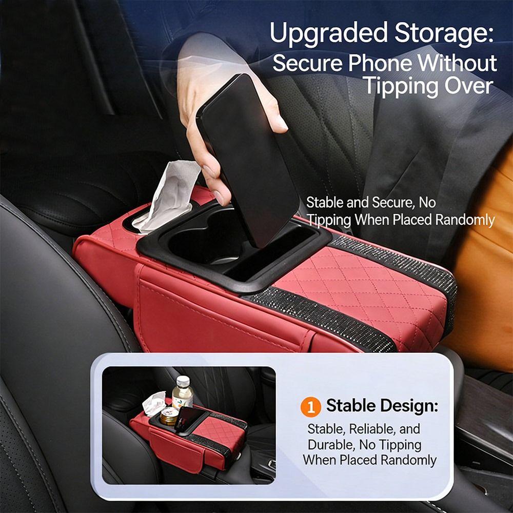 PU Leather Center Console Armrest Cushion with Cup Holder Tissue Box Height Increasing Car Armrest Pillow Multifunctional