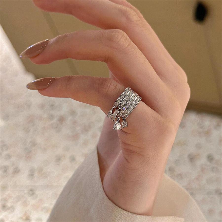 Diamond drop fringed ring female design index finger ring cold feeling open ring