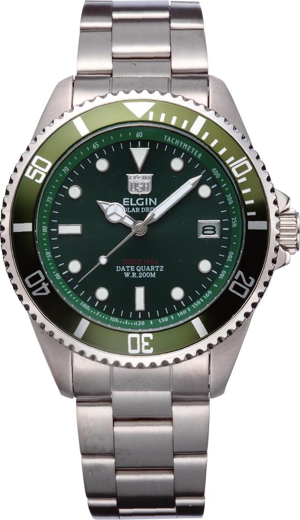 Elgin Solar Water Resistant to 20 Green NEW Men's Diver's Watch, ATM, Dial, FK1426S-GR,