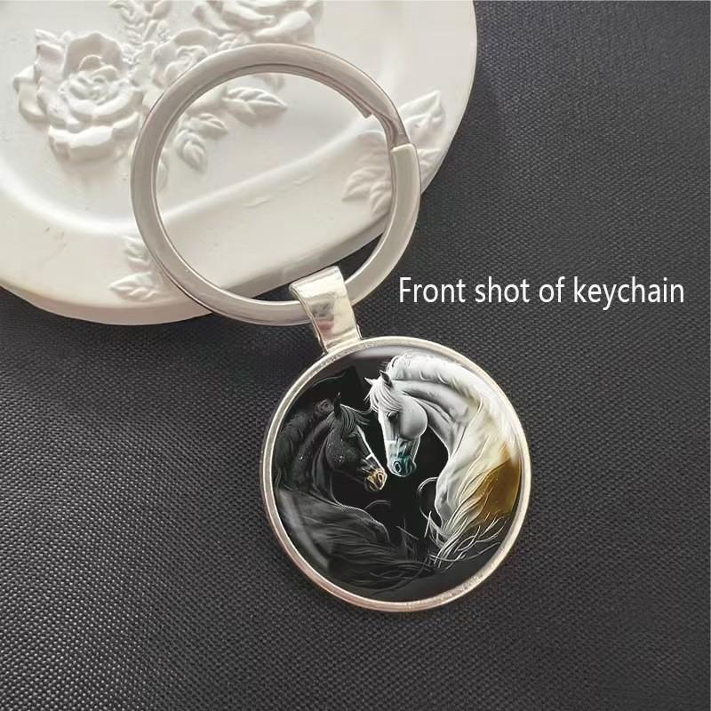Running Steed Pattern Circular Pendant Keychain Cross Border Selling Metal Keyring Pendant Small Gift.