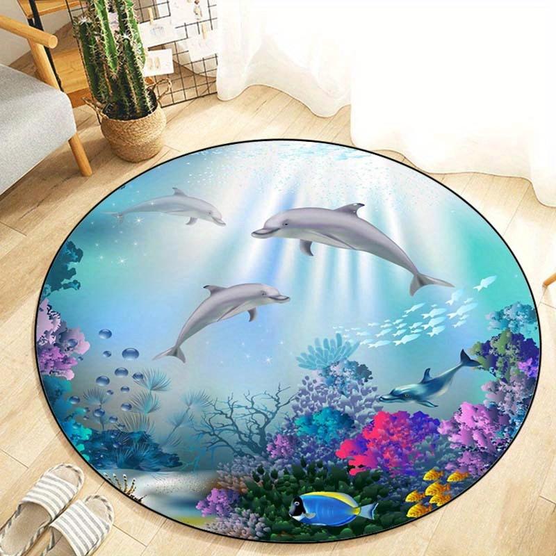 3D Dolphin Ocean Print Rug, Non Slip Carpet, Artistic Floor Mat for Living Room, Bedroom, Play Area Decor