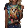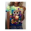 3D Printed Owl Printed Ladies Short Sleeve T-Shirt, Street Outdoor Trendy Women's Clothing