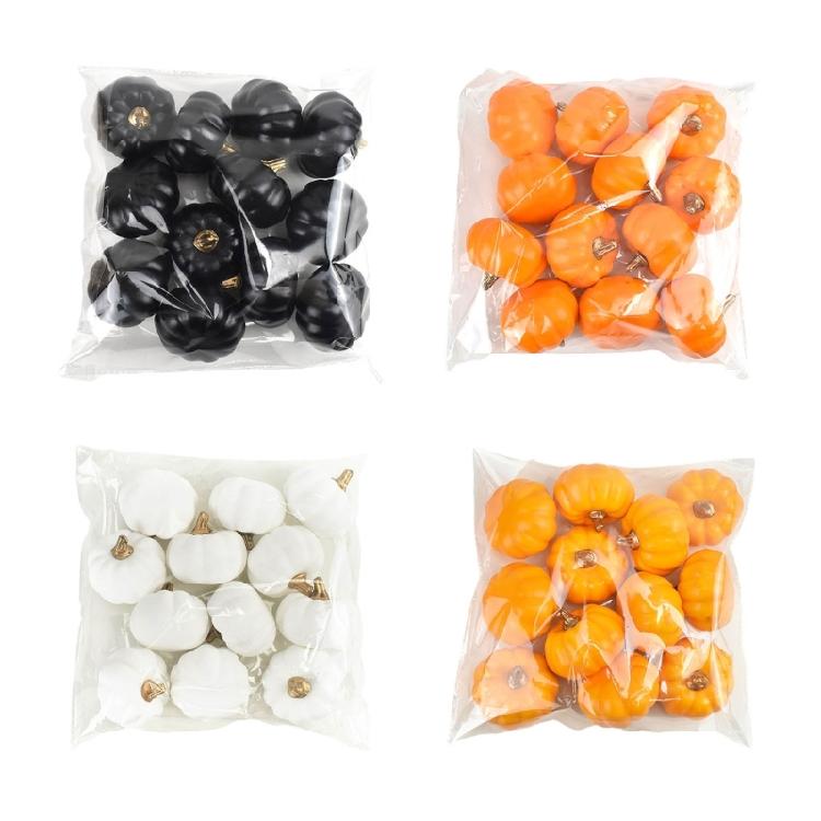 12 Pieces Mini Artificial Pumpkins (Yellow/Orange/Black/White)
