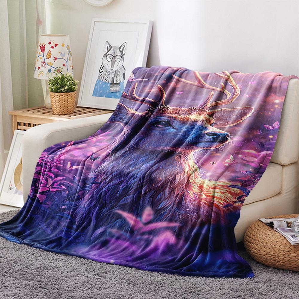 Deer Print Flannel Blanket, High quality Comfortable for All Seasons, Home Decor, Warmth and Comfort, Perfect for Christmas Gifts