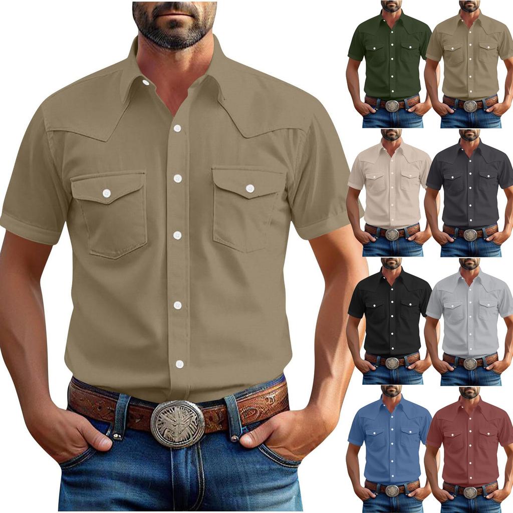 Pánská volná klasická košile s klopou, s více kapsami, průmyslová pracovní košile