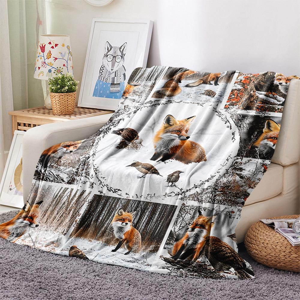 Fox Print Flannel Blanket, High quality Comfortable for All Seasons, Home Decor, Warmth and Comfort, Perfect for Christmas Gifts