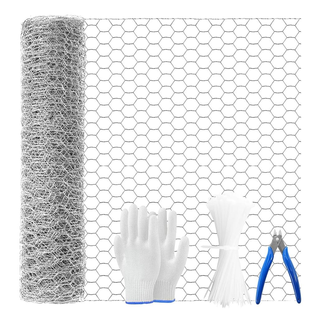 Chicken Wire Mesh Roll 40cm x 10m, Galvanized Hexagonal Fencing Wire Mesh Garden Fence Protective Metal Net with Cutting Pliers, Gloves and 100 Cable