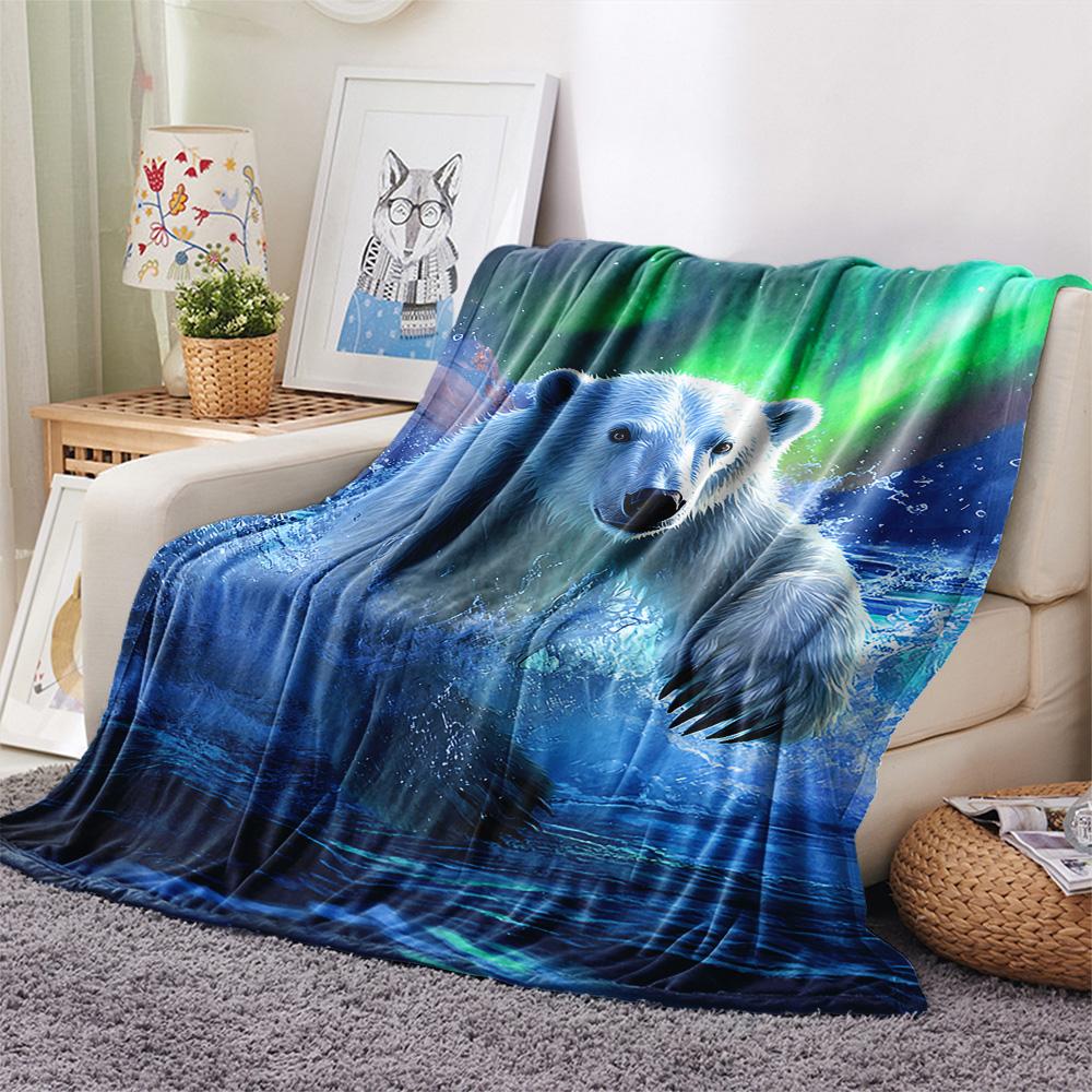 Polar Bear Print Flannel Blanket, High quality Comfortable for All Seasons, Home Decor, Warmth and Comfort, Perfect for Christmas Gifts