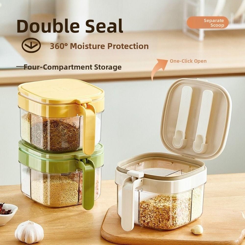 Glass Sealed Seasoning Jar 4 Grids Leak-proof Sugar and Salt Container Large Capacity Transparent Spice Tank Restaurant