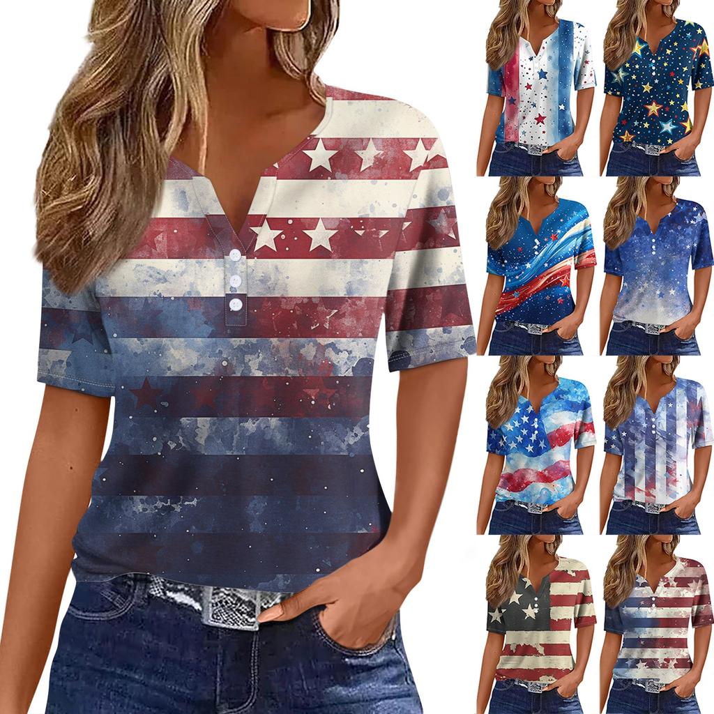 Women's T Shirt Tee Print Button Short Sleeve Daily Weekend Fashion Basic V- Neck Regular Top
