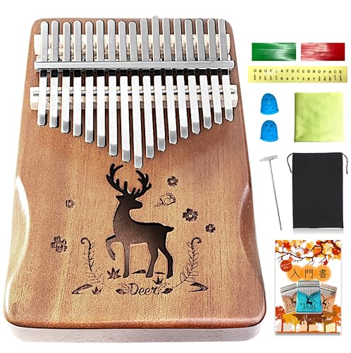 Beginner's 17-Key Mahogany Kalimba Set, Pre-Tuned, Includes Beginner's Guide and Sheet Music in Japanese, Engraved, Dark Brown