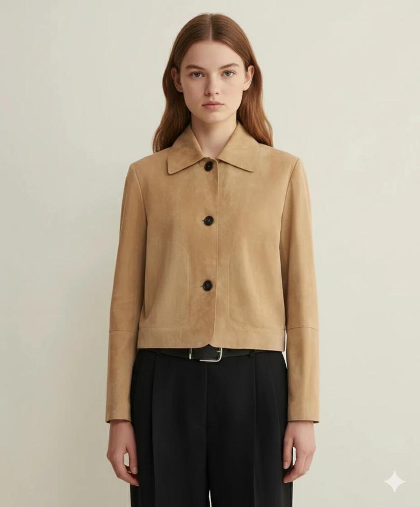 Handmade Party Women's Causal Genuine Tan Suede Lambskin Leather Jacket Motorcycle