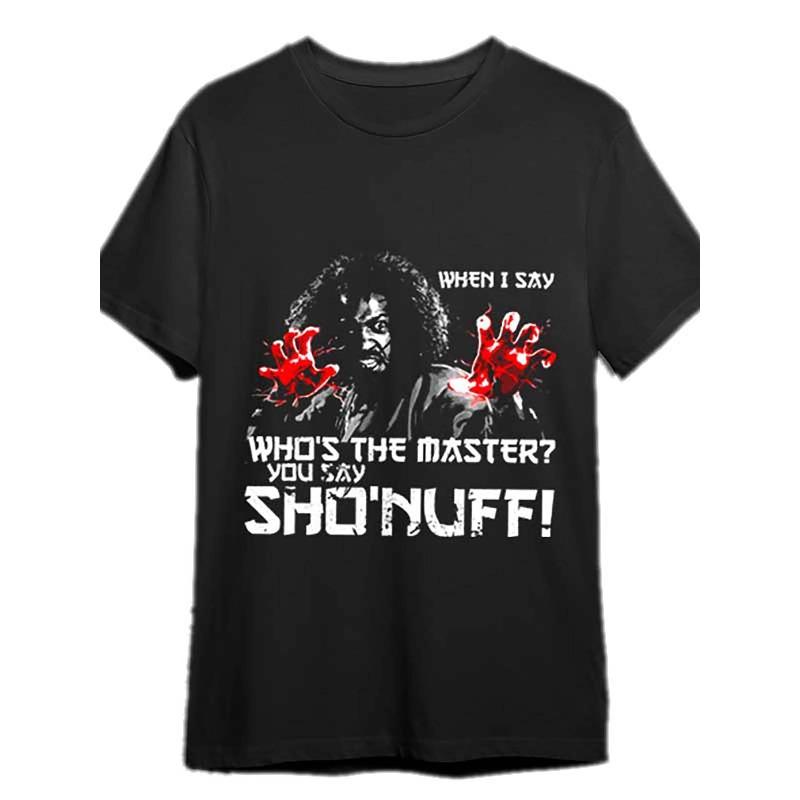 Pánské bavlněné tričko evropské velikosti ve vintage stylu, „Kdo je mistr?“ Tričko s grafikou "You Say Sho'Nuff", Ležérní kulatý výstřih, Střední pružnost, Jednobarevné
