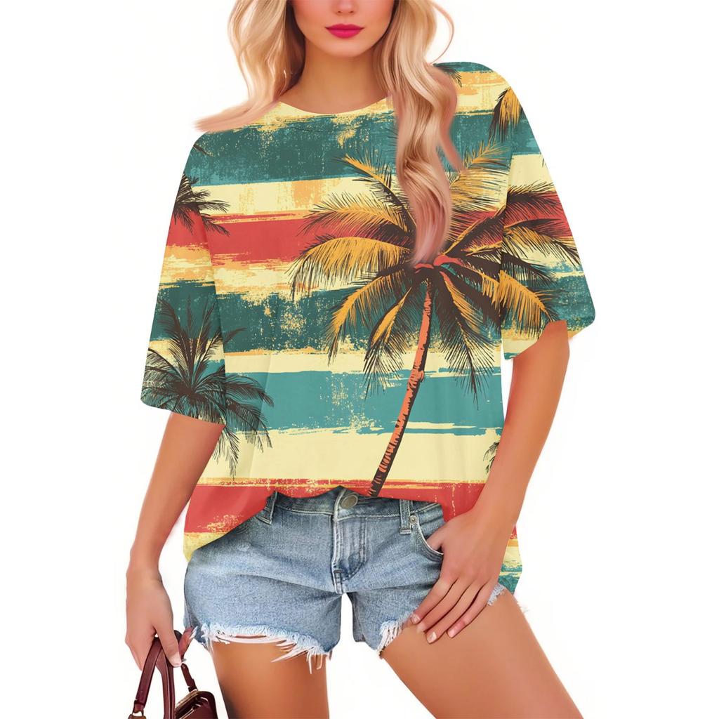 Women's Fashion Casual Floral Loose Round Neck Short Sleeve Trendy Holiday T-shirt Top