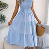 2026 Spring/Summer Women's Solid Color Black Fungal Edge Flying Sleeve Pulling Waist Skirt S-XL