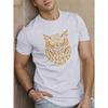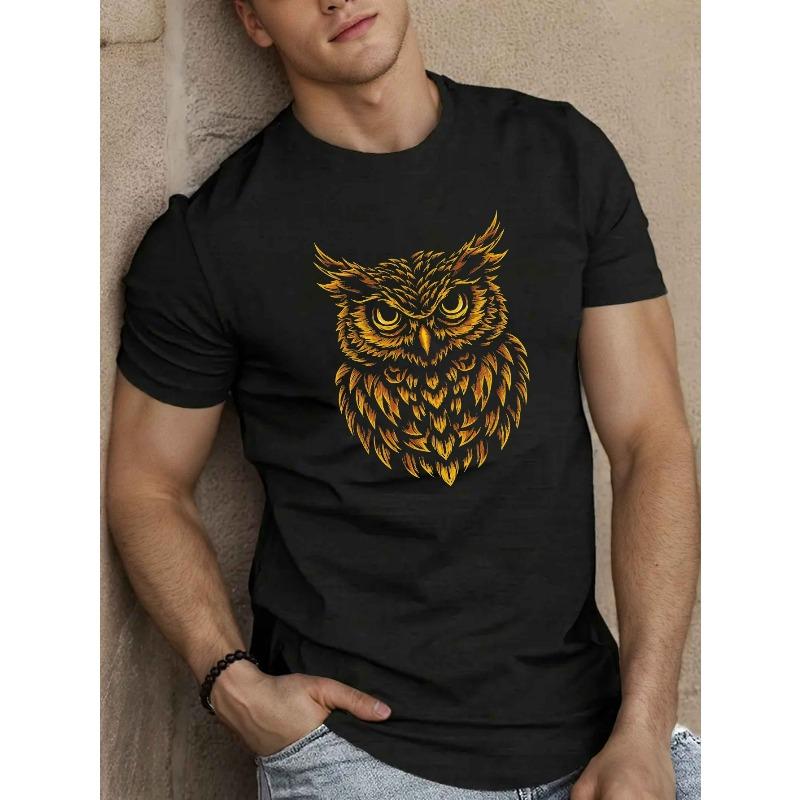 European sizes Men'S Casual Crew Neck T-Shirt with Intricate Owl Design, Polyester Knit Fabric, Slight Stretch, Regular Fit, Summer Top