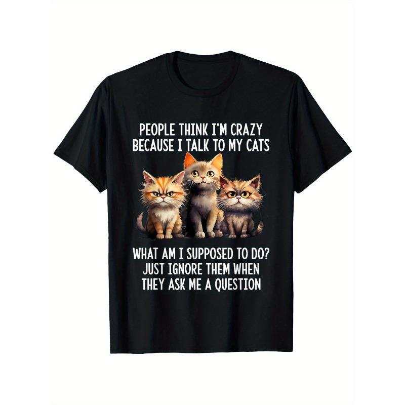 Evropské velikosti Lidé si myslí, že jsem blázen, protože mluvím se svými kočkami Tričko pro muže, Měkká látka, Prodyšné, Pohodlné tričko s krátkým rukávem Perfektní