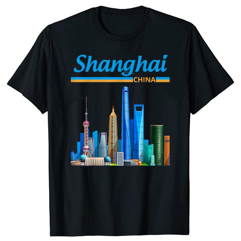 Funny I Love China Shanghai Skyline Watercolor T Shirts Men Humor Streetwear Tee Shirt Short Sleeve Unisex Loose Clothing