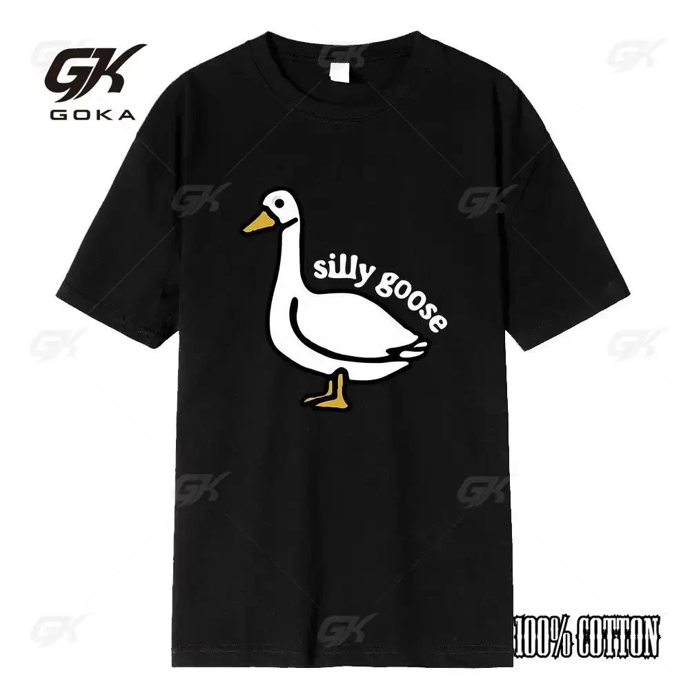 Internet Celebrity Big White Duck Funny Print Crew Neck Tshirt Mens Couple 100 Cotton Black Clothing High Quality Fashion