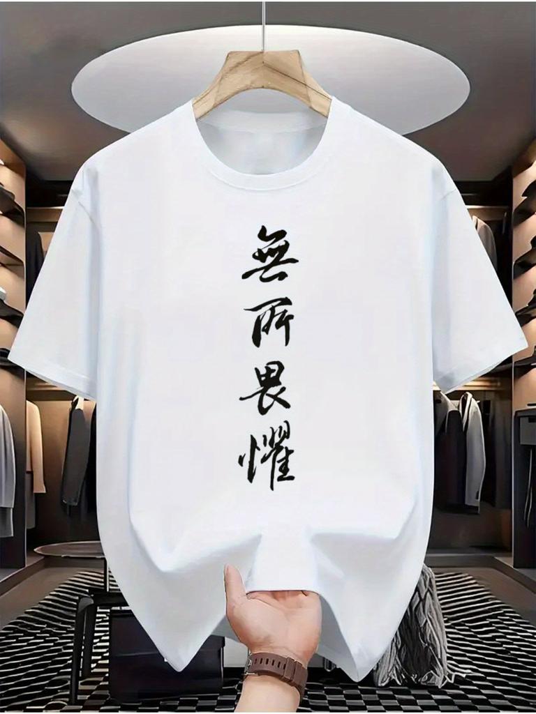 Mens 100 casual Tshirt creative Chinese calligraphy print slight elasticity suitable for daily and weekend casual occasions