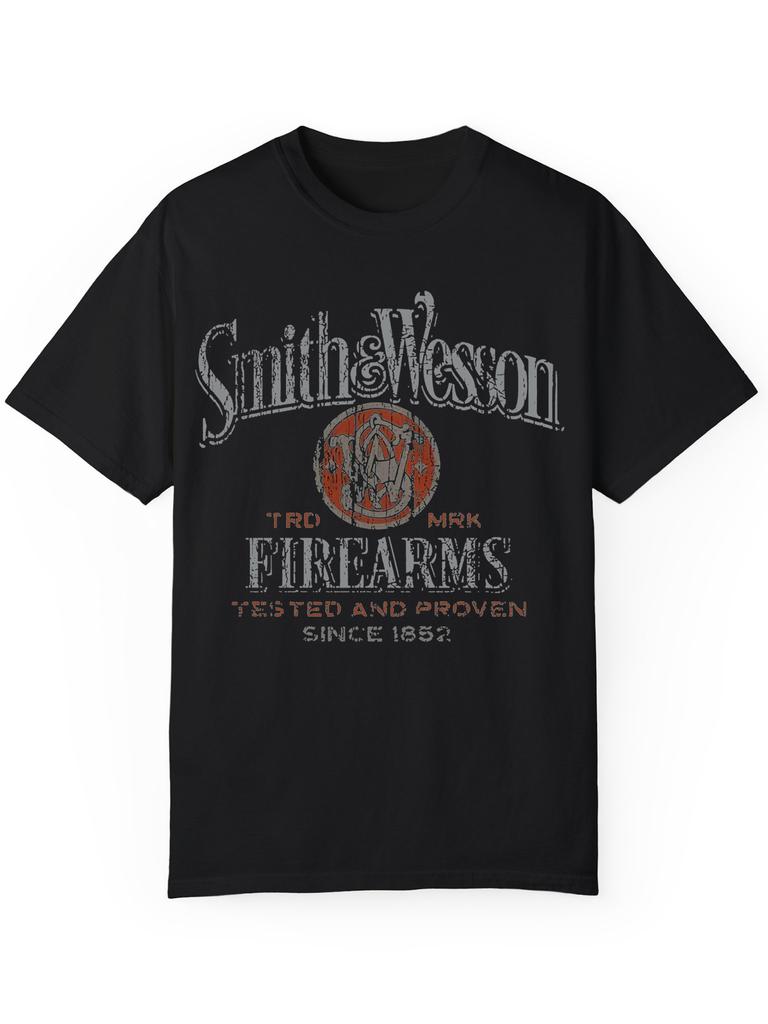 Mens Retro Gun Pattern Tshirt Black Retro Shooting Sports Short Sleeve Shirt Gun Enthusiast Casual Round Neck Top