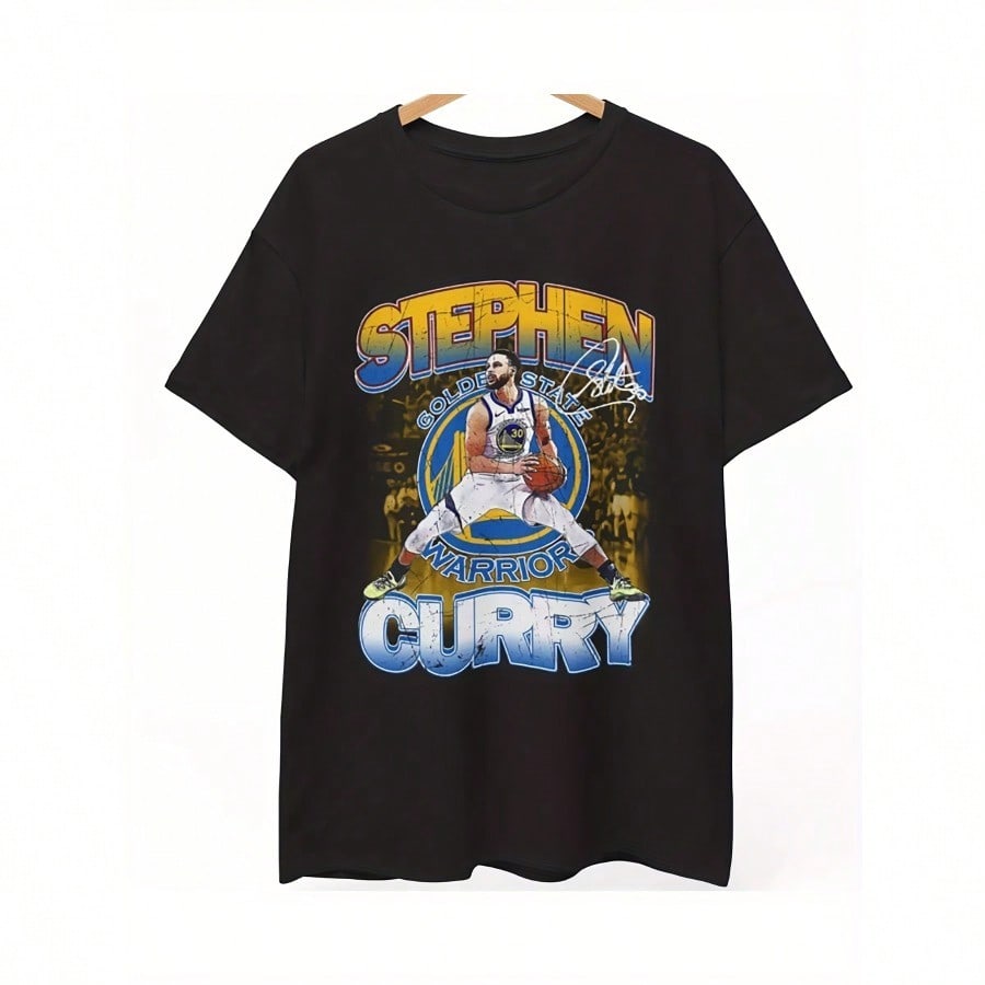 StephenCurry Graphic Iconic 3 Point Shot Basketball Fan Shirt Short Sleeve Round Neck Tee with Pure Cotton 200g