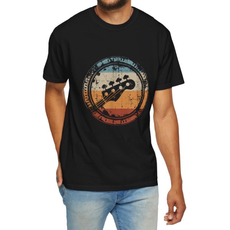 Mens casual Tshirt short sleeved guitar pattern design black with orange and red stripes lightweight and breathable in summer