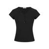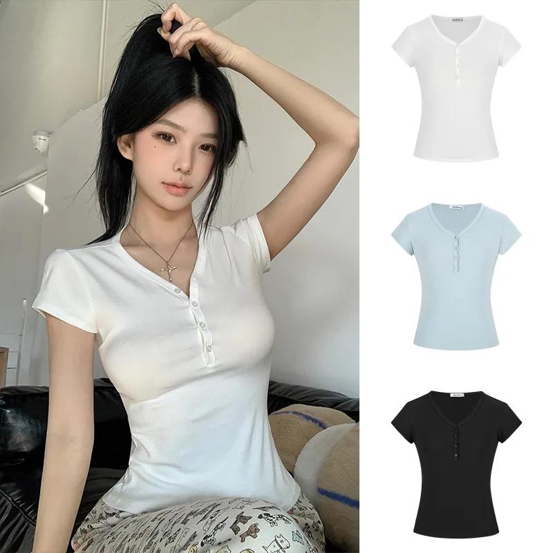 Women's V Neck Henley T-shirt Ribbed Knit Short Sleeve Slim Fit Solid Color Casual Daily Top
