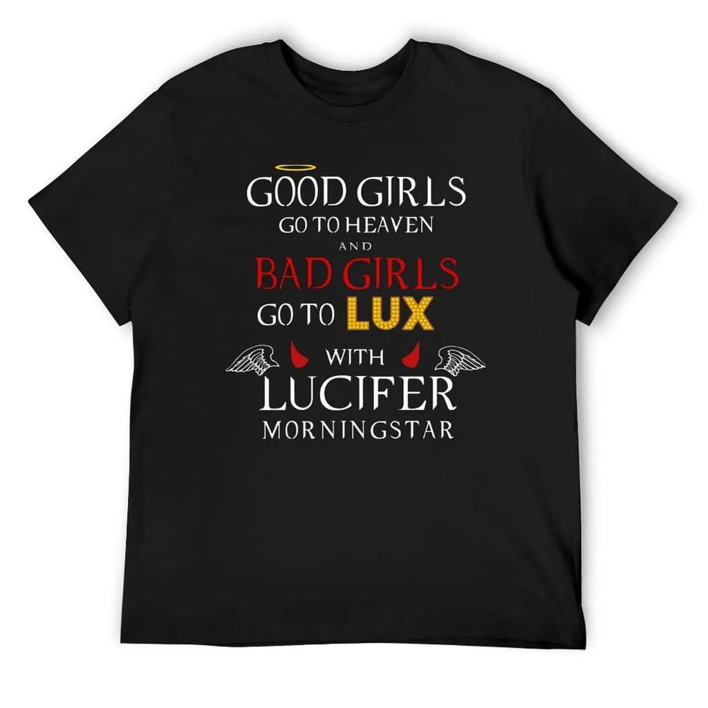 Lucifer - Bad Girls Go To Lux With Lucifer Morningstar Funny Quote T-Shirt summer 2025 mens t shirts casual stylish