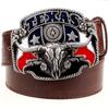 Wild West TEXAS Cowboy Belt Bull Skull Head Metal Buckle American Texan Pride Fashion Waistband For Men