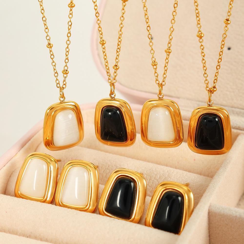 European and American simple opal pendant necklace earrings women's jewelry set gold-plated 18k