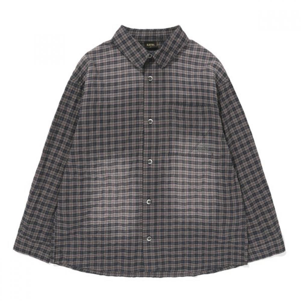 This is a tone-on-tone brown check shirt with an excellent lightweight fit. The subtle color combination of brown and navy is accented with lettering embroidery on the chest pocket, and the brush-washing effect adds a vintage yet trendy mood. It can also be worn around the waist for a layered look, making it an item that can be styled in a variety of ways.