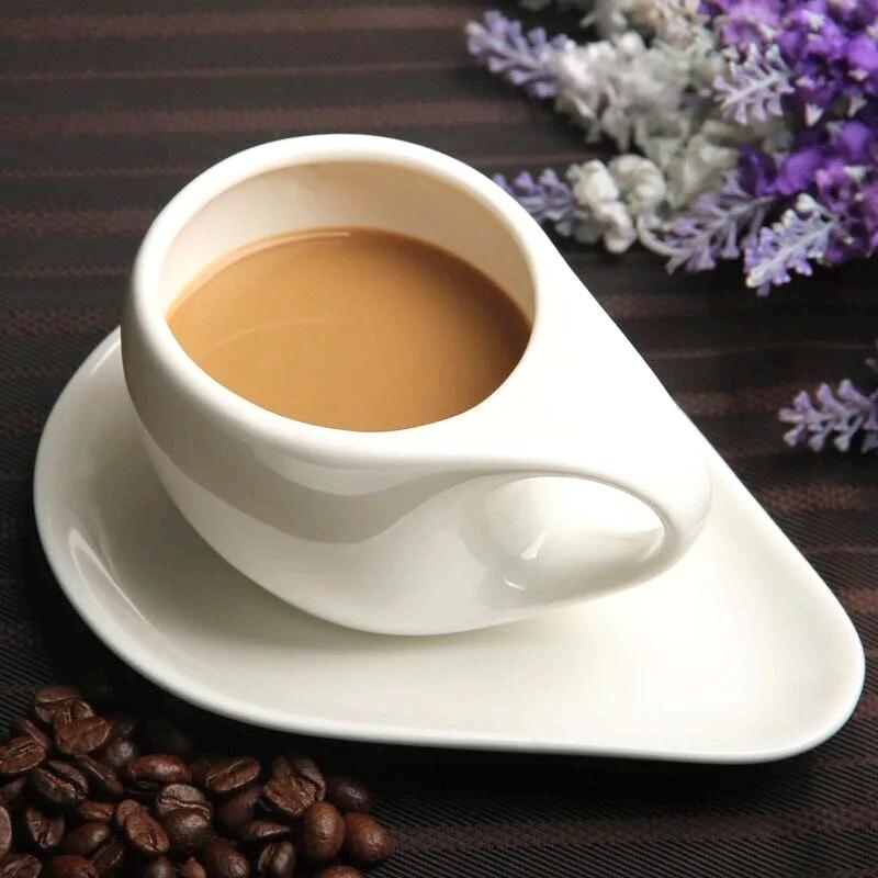 High-Appearance Creative Wholesale Ceramic Coffee Cup and Saucer Set Minimalist Pure White Tableware for Home Office Use - Perfe