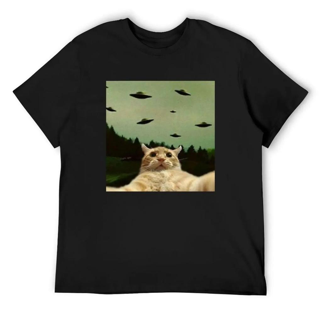 cat selfie with ufo T-Shirt Luxury man basketball graphic tees summer 2025 mens funny t shirts