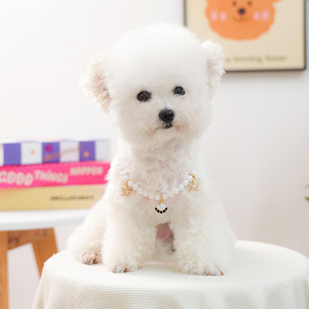 Pet pearl necklace shell starfish pendant cat collar puppy teddy neck cute ornament