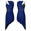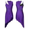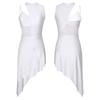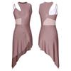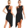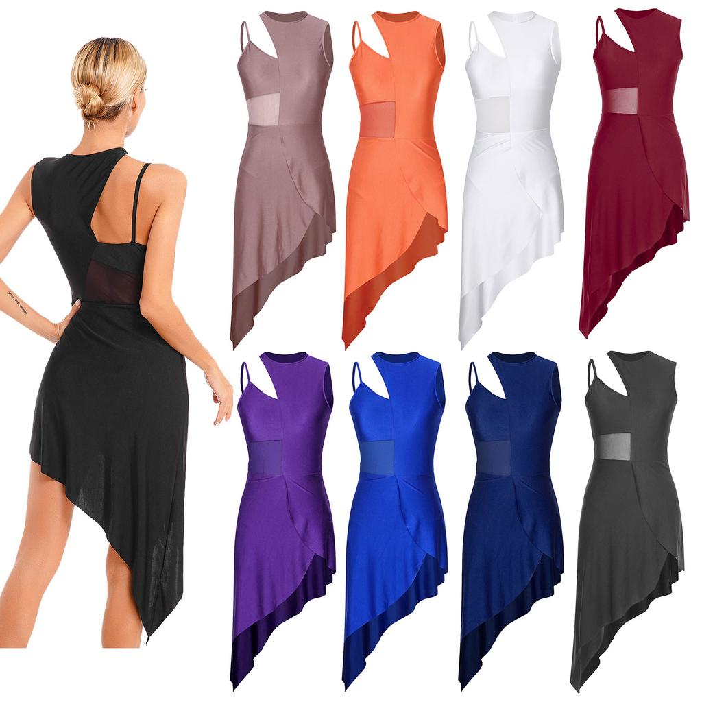 Womens Dance Leotard Dress Sheer Mesh Patchwork Sleeveless Asymmetrical Hem Dress Skating Latin Dancewear