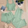 Dámské Elegantní Žebrované Noční Šaty s Krajkovým Lemem Bez Rukávů Výstřih do V Knoflíky Dekorace Slip Šaty Pohodlné Oblečení na Spaní & Volný Čas