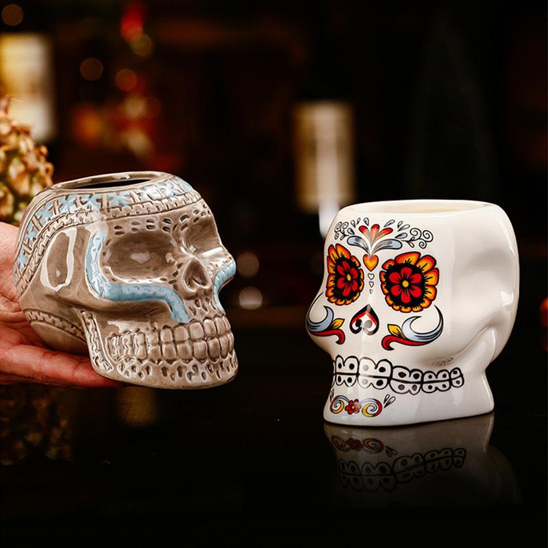 Hawaiian Tiki Cup Skull Ceramic Mug for Tiki Bar Home Bar DecorTiki Cocktail Cocktail Drinking Glass