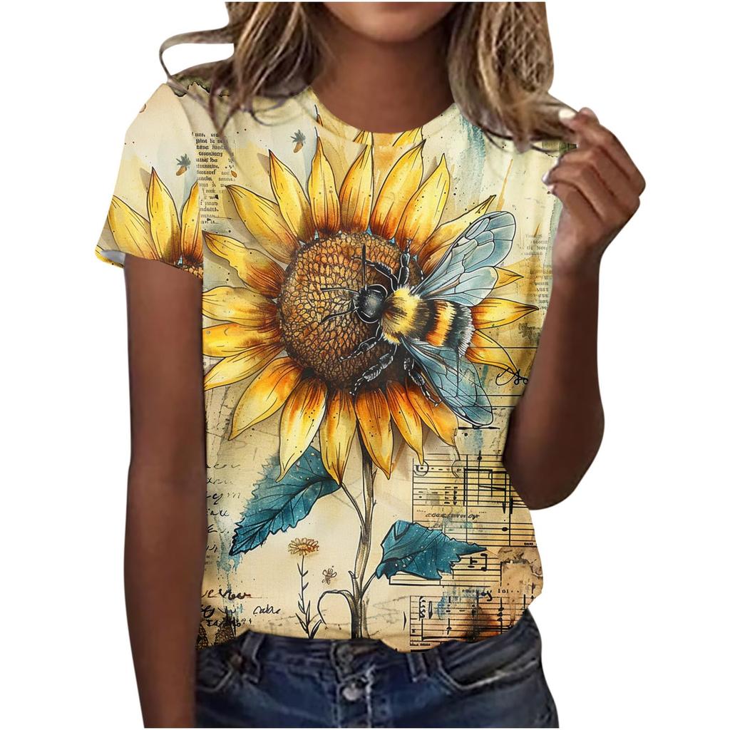 Cute Honey Bee Graphic 3D Print T-Shirts Women's Short Sleeves Elegant T Shirt Streetwear Y2k Harajuku Tees Tops Female Clothing