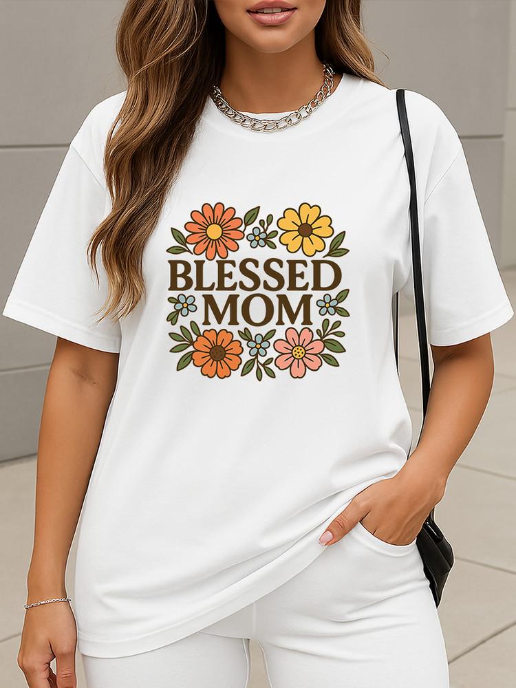Blessed Mom Floral T-Shirt Inspired Mother's Day Gift Tee Boho Flower Print Unisex T-Shirt