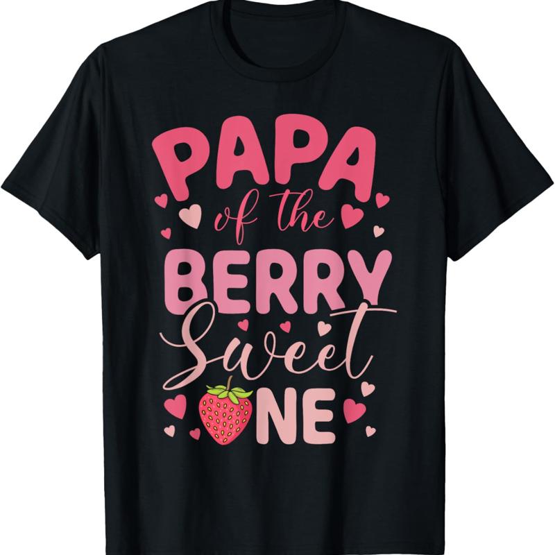 Papa Of The Berry Sweet One Strawberry First Birthday T Shirt