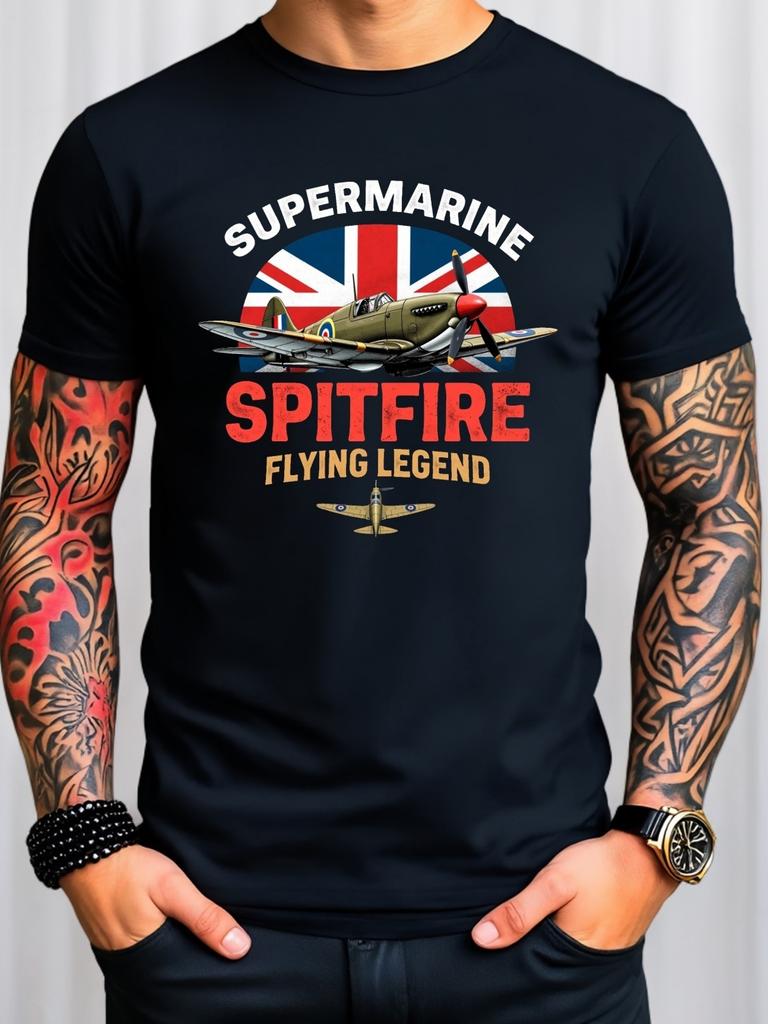 Mens Vintage British WWII Spitfire Flying TShirt Retro Military Aviation Graphic Tee Cotton Shirt Themed Events Summer Top