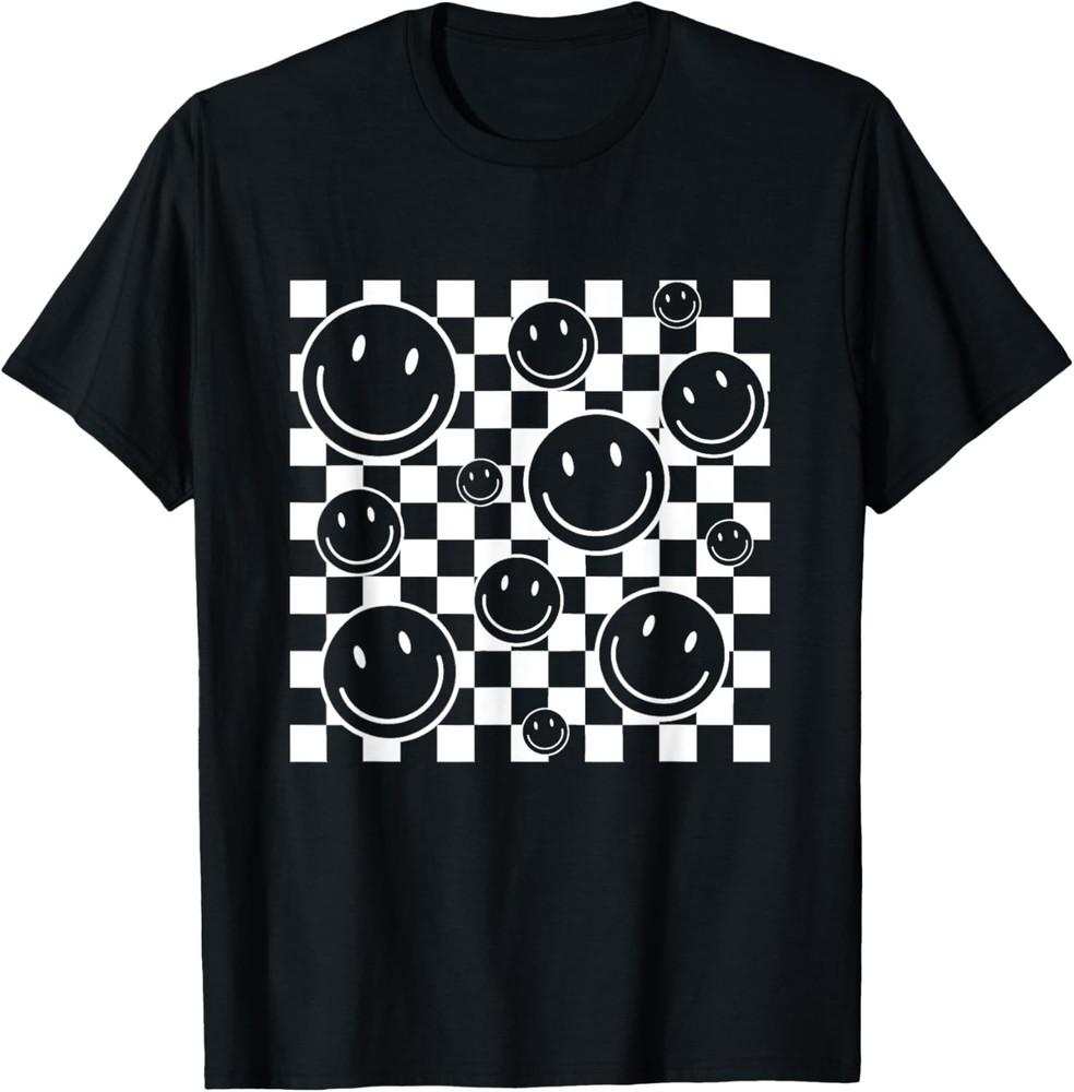 Retro Veselej Obličej Kostkovaná Vlajka Vzor Pro Ženy Muže Děti Tričko Unisex Tričko