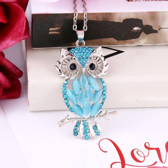 Poutavý přívěsek sova: Ozdobte se úžasným přívěskem ve tvaru sovy s umělým opálem a drahokamy. Tento náhrdelník vyzařuje styl a eleganci, ideální pro módní ženy, které hledají elegantní doplněk.