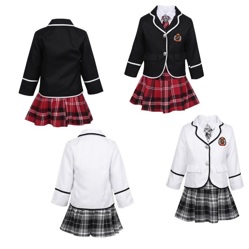 Boys Girls' 4Pcs Japanese Korean Winter School Uniform Long Sleeves Shirt Blazer Suit with Mini Skirt/Pants Tie