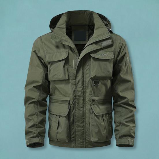 Kapuce a rukávy této bundy jsou odnímatelné, což vám umožní přizpůsobit si vzhled podle příležitosti. Vyrobeno z vysoce kvalitní tkaniny, je vodoodpudivé, prodyšné a odolné proti opotřebení a poskytuje vynikající ochranu proti větru.