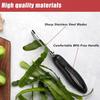 Otočné dvojité čepele: Procházejte úkoly loupáním snadno pomocí otočného designu škrabky na ředkvičky a ostrých dvojitých břitů, které se přizpůsobí obrysům ovoce a zeleniny, což šetří čas a námahu.