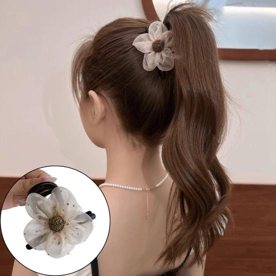 Módní síťovaný květinový design: Sponka do vlasů vyniká svým elegantním a strukturovaným květinovým vzorem ze síťoviny, který dodá vašemu celkovému vzhledu sofistikovaný nádech. Vylepšete svůj vzhled tímto elegantním doplňkem, který vyzařuje šarm a energii.