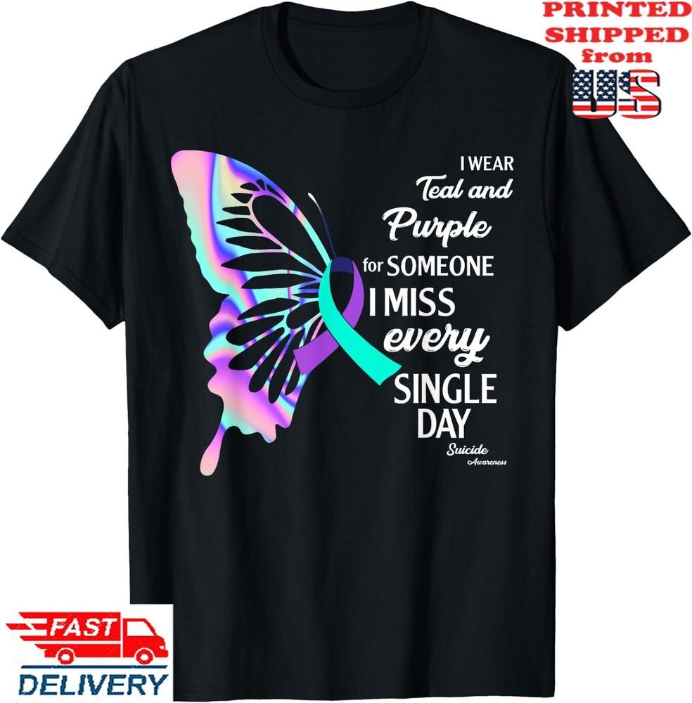 I Wear Teal & Purple Suicide Prevention Awareness Butterfly T-Shirt, Unisex Tee Unisex T-Shirt